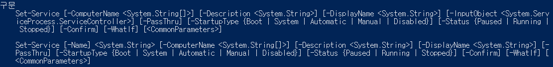 잘 보면 두 번째 문단에 [-Status {Paused | Running | Stopped}] 가 있는걸 볼 수 있는데